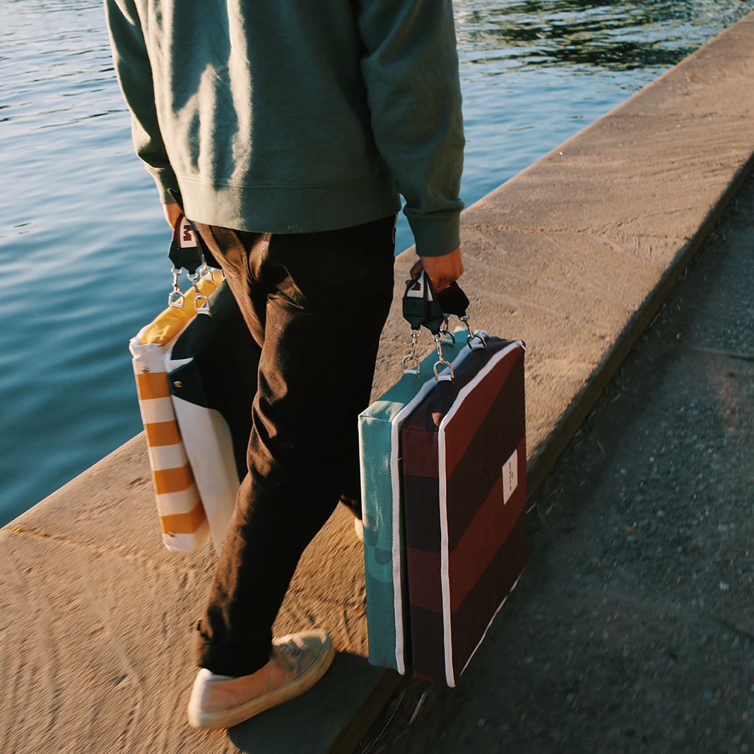 • Cordless heated cushion designed for the modern urban outdoors. Made of premium 100% cotton canvas, recycled materials and high end heating componentry, it is as beautiful as it is functional.