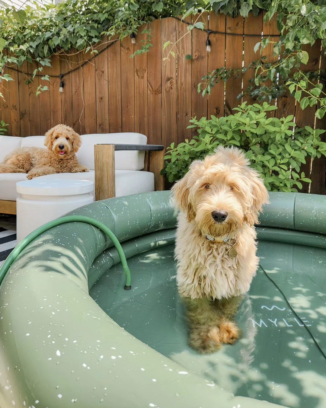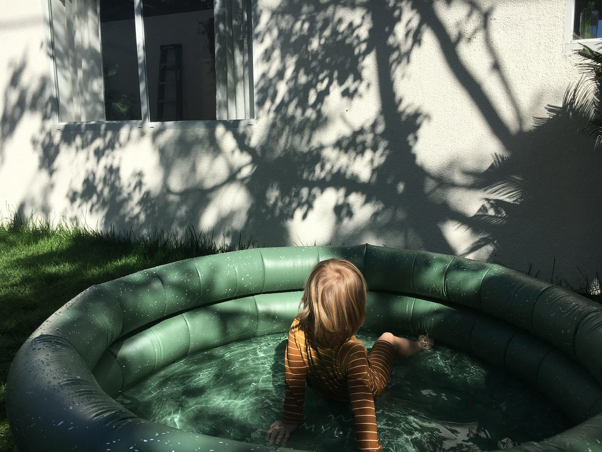 At 65" our inflatable pool is perfect for two lounging adults or a handful of kids. We feel strongly that this is the perfect size for cooling off while still being conscious of the water use implications of filling pools.